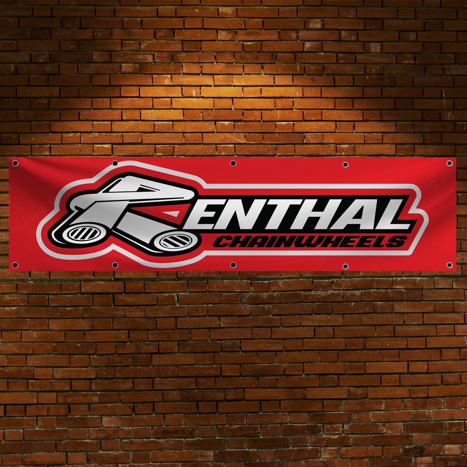 Show your support for one of the most trusted brands in motorsports with the Renthal Chainwheels Banner. This bold 2×8 ft red flag is perfect for motocross fans, motorcycle enthusiasts, ATV riders, and anyone who appreciates the high-performance Renthal chainwheels. Whether you’re decorating your man cave, garage, or motocross shop, this eye-catching banner will add a touch of professional motorsports flair to any space.