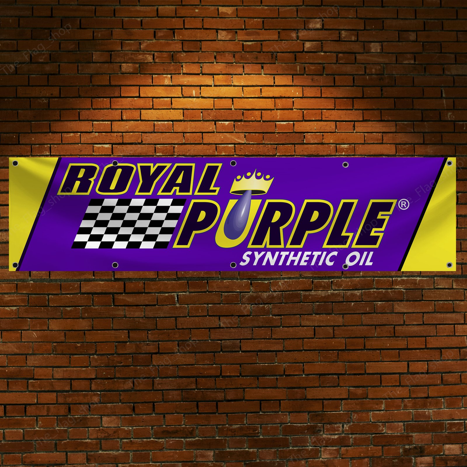 Elevate your man cave, garage, or motorsport space with this striking Royal Purple Oil Banner. Measuring a bold 2×8 ft, this high-quality black flag features the iconic Royal Purple logo, renowned for its superior performance in synthetic oils and motorsports. Whether you’re a racing enthusiast, a car mechanic, or a lover of high-performance oils, this banner is the perfect addition to showcase your passion for Royal Purple Racing Oil and the world of motorsports.